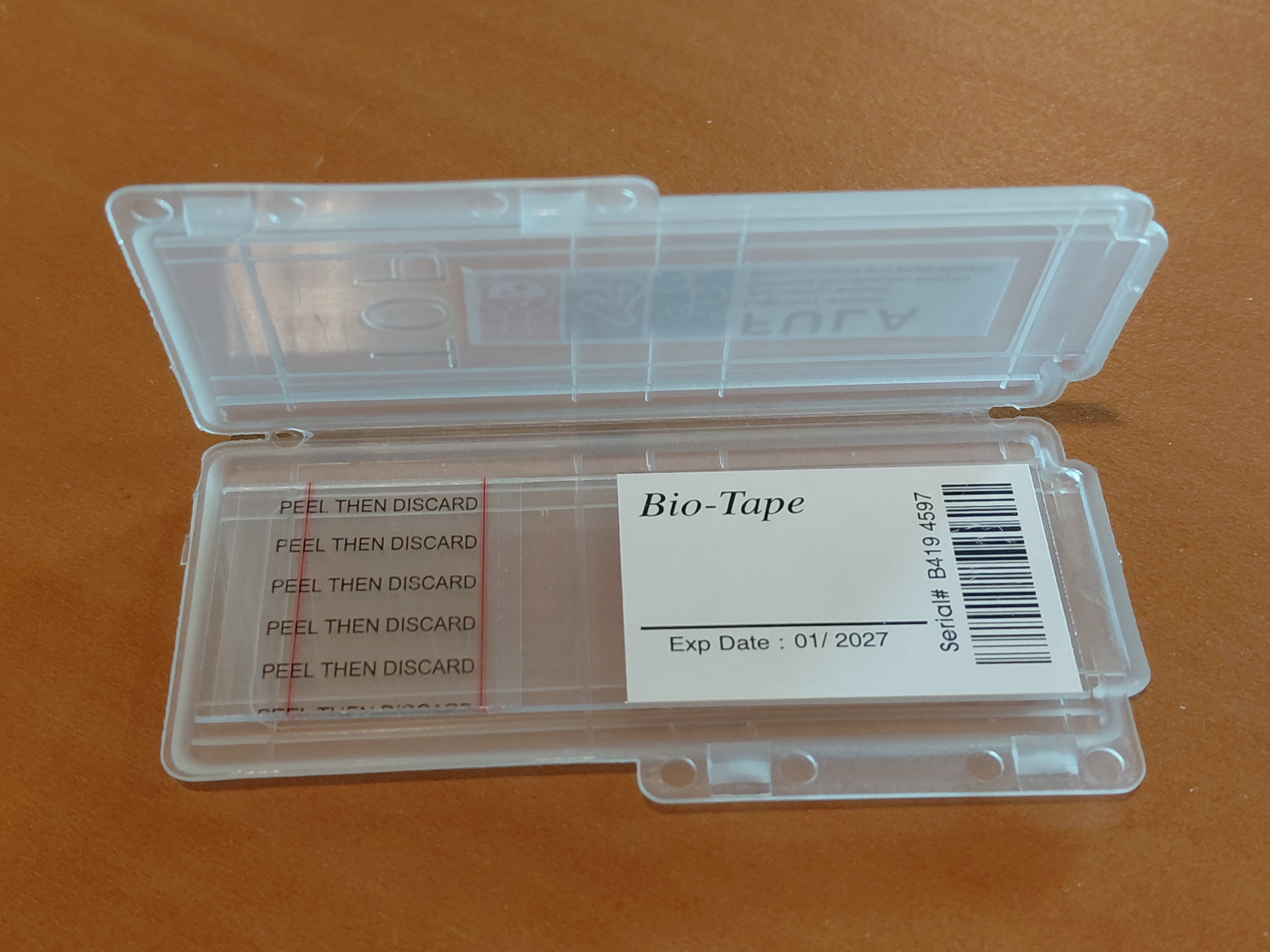 Content: plastic plate with bio tape, shipping sticker, data sticker and zip lock bag.